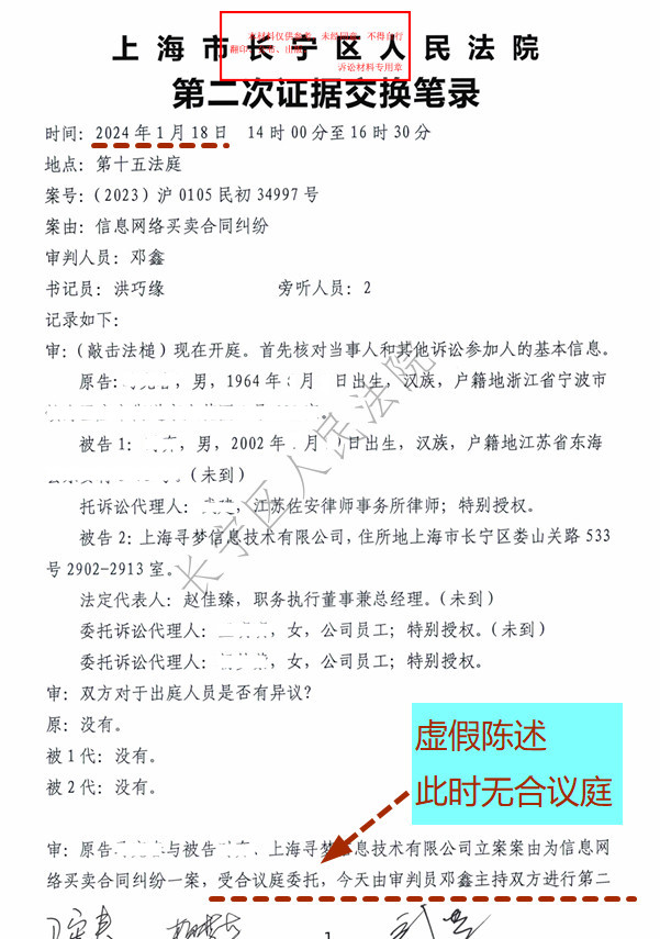 (2023)沪0105民初34997号 私自办案的行为主要是指没有法律授权或超出法律授权范围,违反法定程序进行的案件处理行为。私自办案的具体表现,无权办案:指个人或组织在没有法律授权的情况下,擅自对案件进行调查、审理或作出处理决定。越权办案:指个人或组织虽有法律授权,但在办案过程中超出了其权限范围。 四、【法律法规】 (一)《最高人民法院关于规范合议庭运行机制的意见》中指出,合议庭是人民法院的基本审判组织,合议庭审理案件时,合议庭其他成员应当根据审判长安排完成相应审判工作,这些工作包括“主持证据交换等庭前准备工作”。 (二)《人民法院工作人员处分条例》 第二条 人民法院工作人员因违反法律、法规或者本条例规定,应当承担纪律责任的,依照本条例给予处分。 第五十条 违反规定私自办理案件的,给予警告、记过或者记大过处分;情节较重的,给予降级或者撤职处分;情节严重的,给予开除处分。 (三)《法官惩戒工作程序规定(试行)》 第四条 法官在履行审判职责过程中,故意违反法律法规办理案件,或者因重大过失导致裁判结果错误并造成严重后果,需要予以惩戒的,依照本规定办理。 第五条 认定法官是否违反审判职责,适用《最高人民法院关于完善人民法院司法责任制的若干意见》等有关规定。 (四)《最高人民法院关于完善人民法院司法责任制的若干意见》 26.有下列情形之一的,应当依纪依法追究相关人员的违法审判责任:(2)违反规定私自办案或者制造虚假案件的。 《法官法》第四十六条 法官有下列行为之一的,应当给予处分;构成犯罪的,依法追究刑事责任:(四)故意违反法律法规办理案件的。 一、【事实】长宁法院邓鑫法官在无合议庭组织授权情况下、在无审判长祁晓栋授权情况下私自办案,两次非法主持证据交换。 二、【证据】 第一次证据交换时间:2023年12月18日; 第二次证据交换时间:2024年1月18日。 本案合议庭组成时间:2024年3月22日; 三、【明知】 邓鑫法官明知私自办案是违法的,所以在《笔录》及《判决书》中加以掩饰。 《笔录1》第1-2页,审(邓鑫):……,受合议庭委托,今天由审判员邓鑫主持双方进行证据交换,由书记员洪巧缘担任记录。此时没有合议庭,更没有委托。明知违法、虚假陈述。邓鑫法官无审判长祁晓栋授权私自办案。 《笔录2》第1-2页,审(邓鑫):……,受合议庭委托,今天由审判员邓鑫主持双方进行第二次证据交换,……此时依然没有合议庭,合议庭也不可能委托。邓鑫法官无审判长祁晓栋授权私自办案。 《判决书》第1页:本院于2023年10月18日立案后,依法适用普通程序组成合议庭,分别于2023年12月18日、2024年1月18日进行了证据交换,于2024年3月29日公开开庭进行了审理。 为什么要说合议庭组成于证据交换之前——明知违法审案,掩盖事实真相。 【证据1】《证据交换笔录1》:2023年12月18日。 【证据2】《证据交换笔录2》:2024年1月18日。 【证据3】《告知合议庭组成人员、书记员通知书》。 【证据4】《判决书》